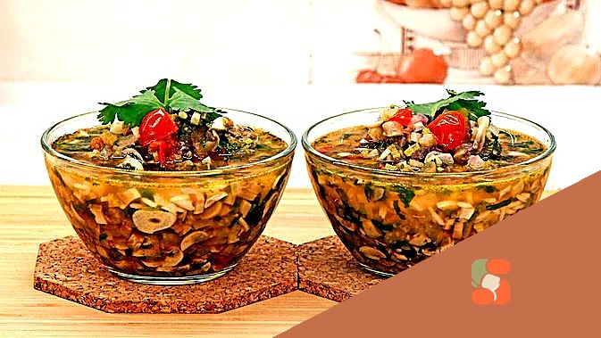 А-ля тайський суп з кінзою, рисом та грибами