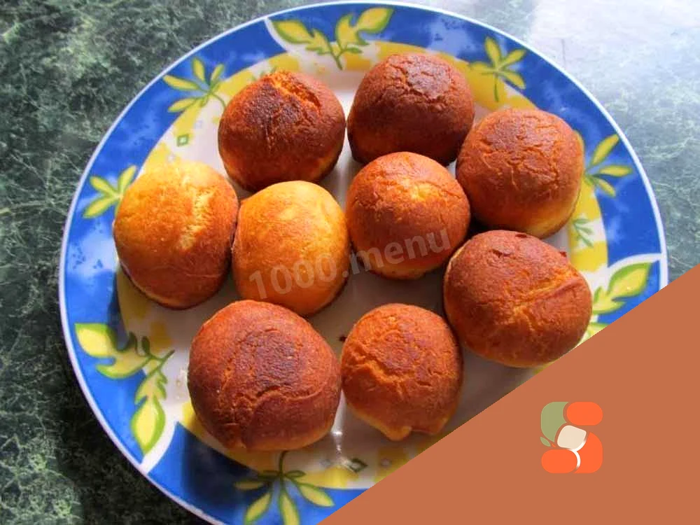 : У неглибоку каструльку наливаємо олію і даємо їй добре прогрітися. Опускаємо кульки з тіста і смажимо із двох сторін на середньому вогні до утворення темно-золотистого кольору. Можна використовувати фритюрницю. Виймаємо пончики по готовності і розкладаємо їх на паперовому рушнику, щоб він увібрав у себе зайву олію.