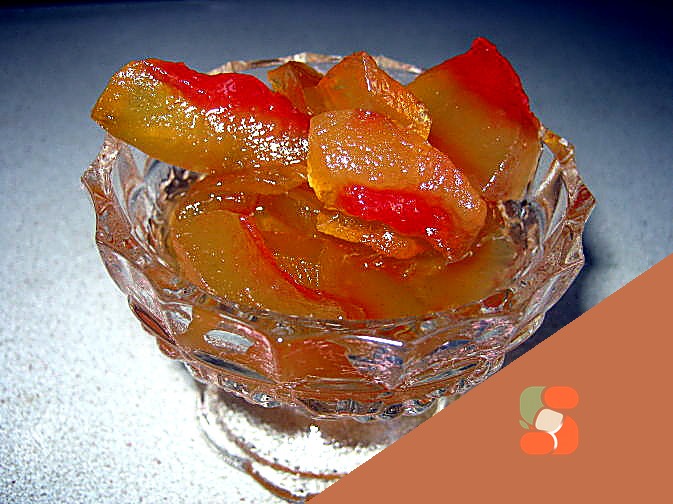 # Арбузне варення Ніжне, світло-рожеве варення з тонким цитрусовим ароматом і легким желеподібним текстурою, що розтає на язику. Скибочки солодкої арбузної м'якоті гармонійно поєднуються з освіжаючою…