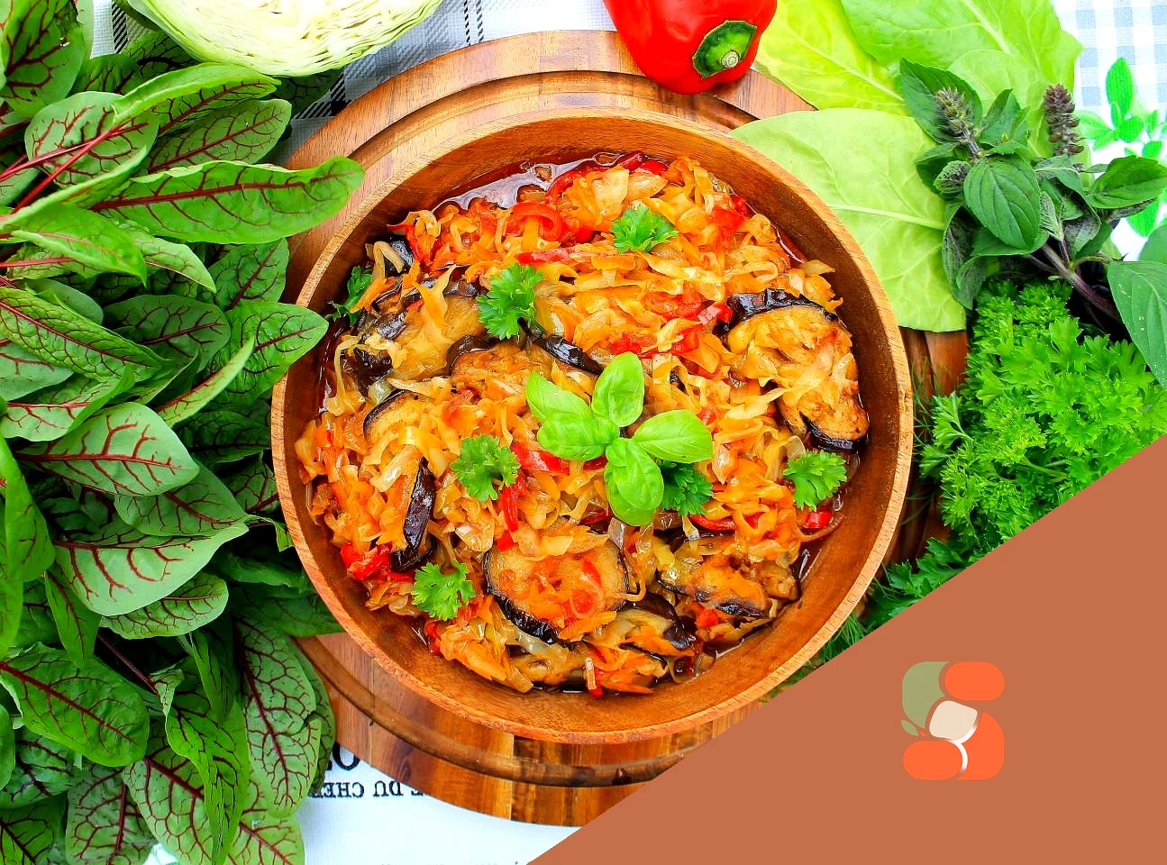 : Готову страву спробуйте на сіль, при необхідності досоліть. Посипте рагу дрібно нарізаною зеленню і подавайте до столу!