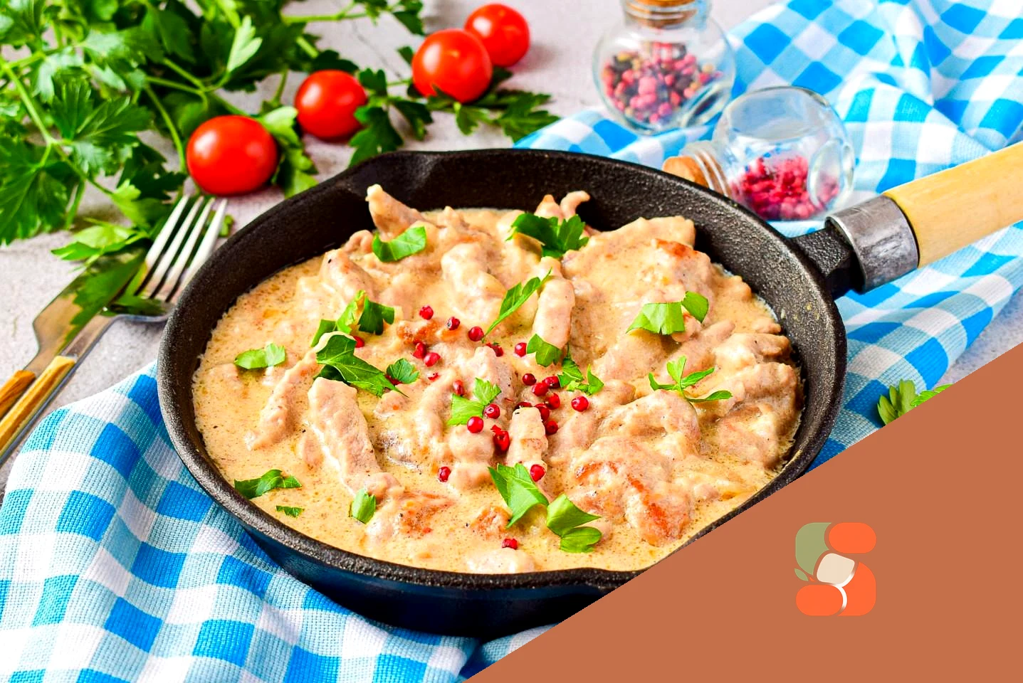 : Сметану розмішайте у воді та залийте м'ясо Додайте за смаком сіль та спеції. Помішуючи, доведіть все до кипіння. Накрийте кришкою сковороду і готуйте на мінімальному вогні 20-25 хвилин. Для аромату можна додати лавровий лист. Кількість води можна трохи змінити в будь-який бік залежно від того, скільки підливи ви хочете отримати.
