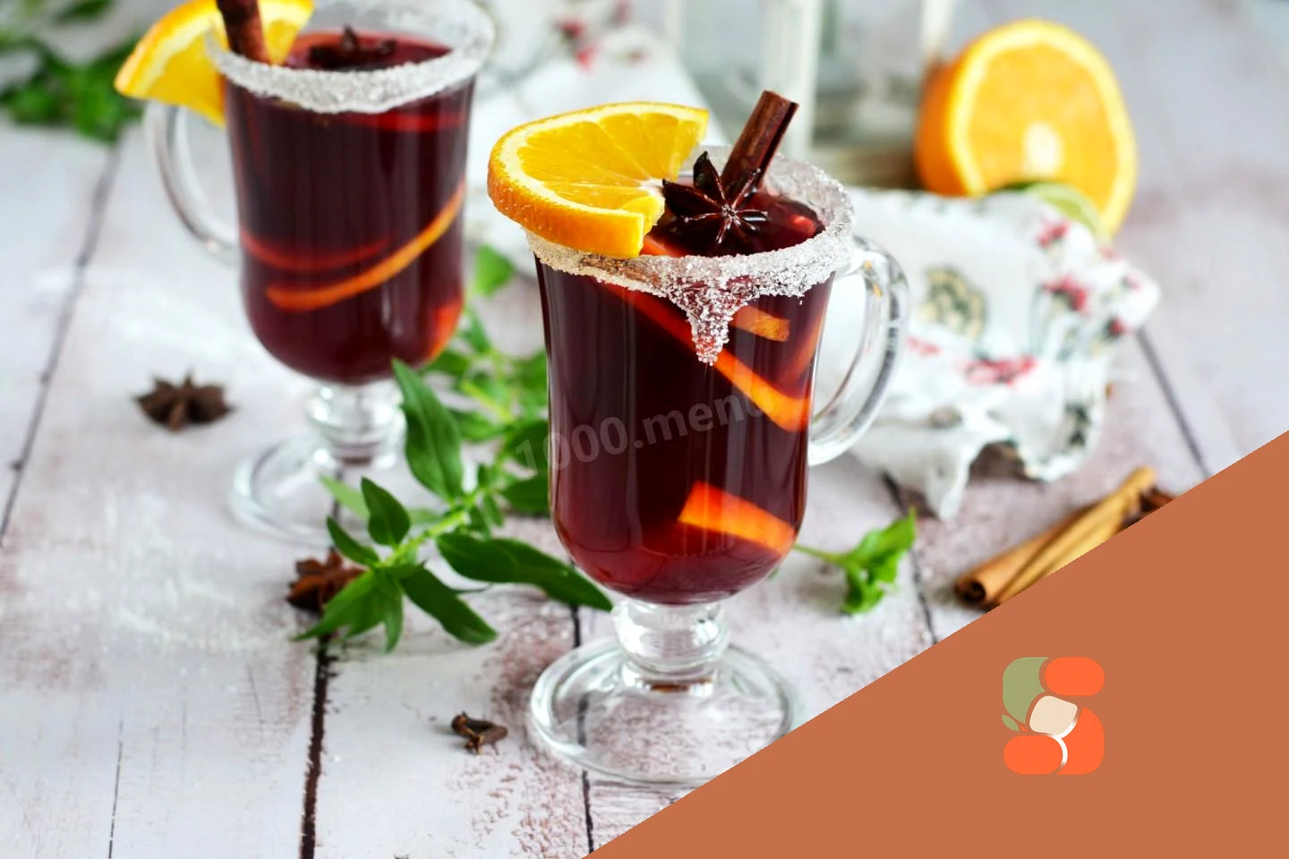 : Розлийте гарячий напій спеціальними склянками для глінтвейну з ручками. Щоб ваші стаканчики виглядали ошатно, поки вариться глінтвейн, можете опустити їх облямівками в сироп, а потім у миску з цукром.