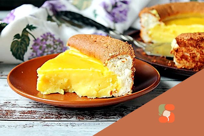 # Бісквітний пиріг із заварним кремом Ніжний, повітряний бісквіт із золотистою скоринкою розташовується шарами, чергуючись з густим, шовковистим заварним кремом, який тане на язику. Цей класичний дес…