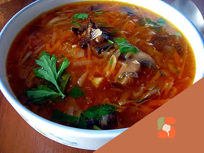 Борщ з грибами та чорносливом