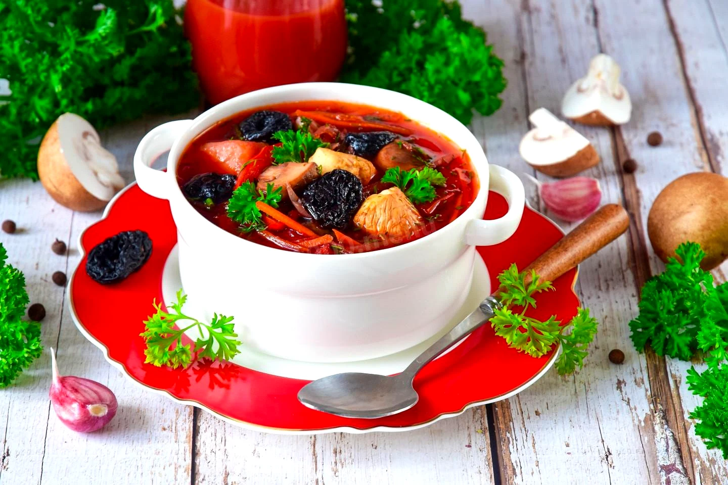 Борщ із чорносливом та грибами