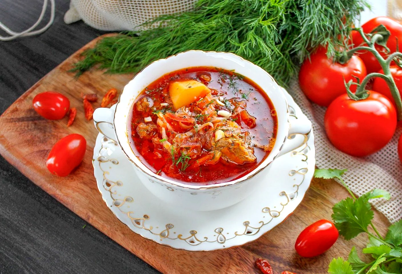 Что добавить в борщ в самом конце? В конце добавьте в борщ чеснок и зелень. Снимите кастрюлю с плиты и дайте настояться под закрытой крышкой несколько минут. Капуста за это время дойдёт до полной готовности и в то же время не станет очень мягкой.