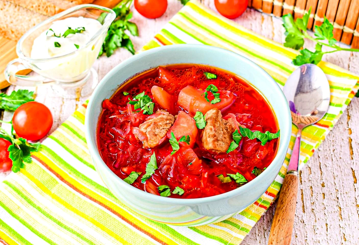: Через вказаний час мультиварка видасть звуковий сигнал, що говорить про те, що страва готова. Борщ розлийте по тарілках та подавайте до столу у гарячому вигляді. Можна доповнити сметаною. Приємного апетиту!