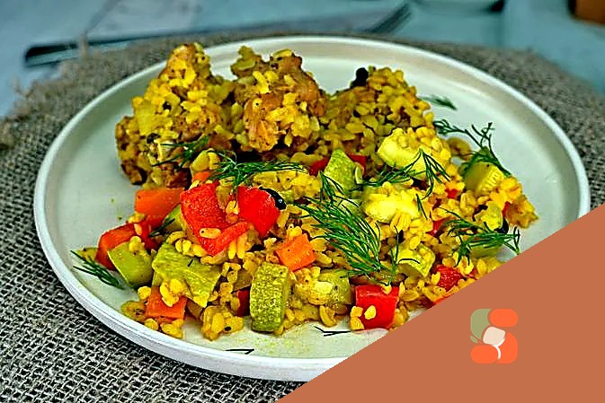 Булгур з куркою та кабачками, в рукаві