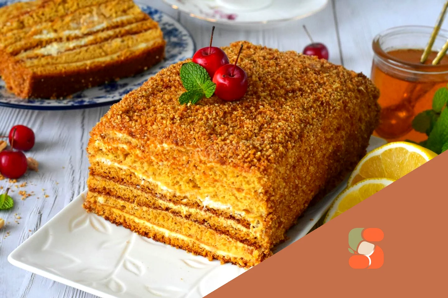 : Поставте торт у холодильник на ніч для просочення. Бісквітний медовик перекладіть на блюдо, наріжте на шматочки і подайте до столу. Приємного апетиту!