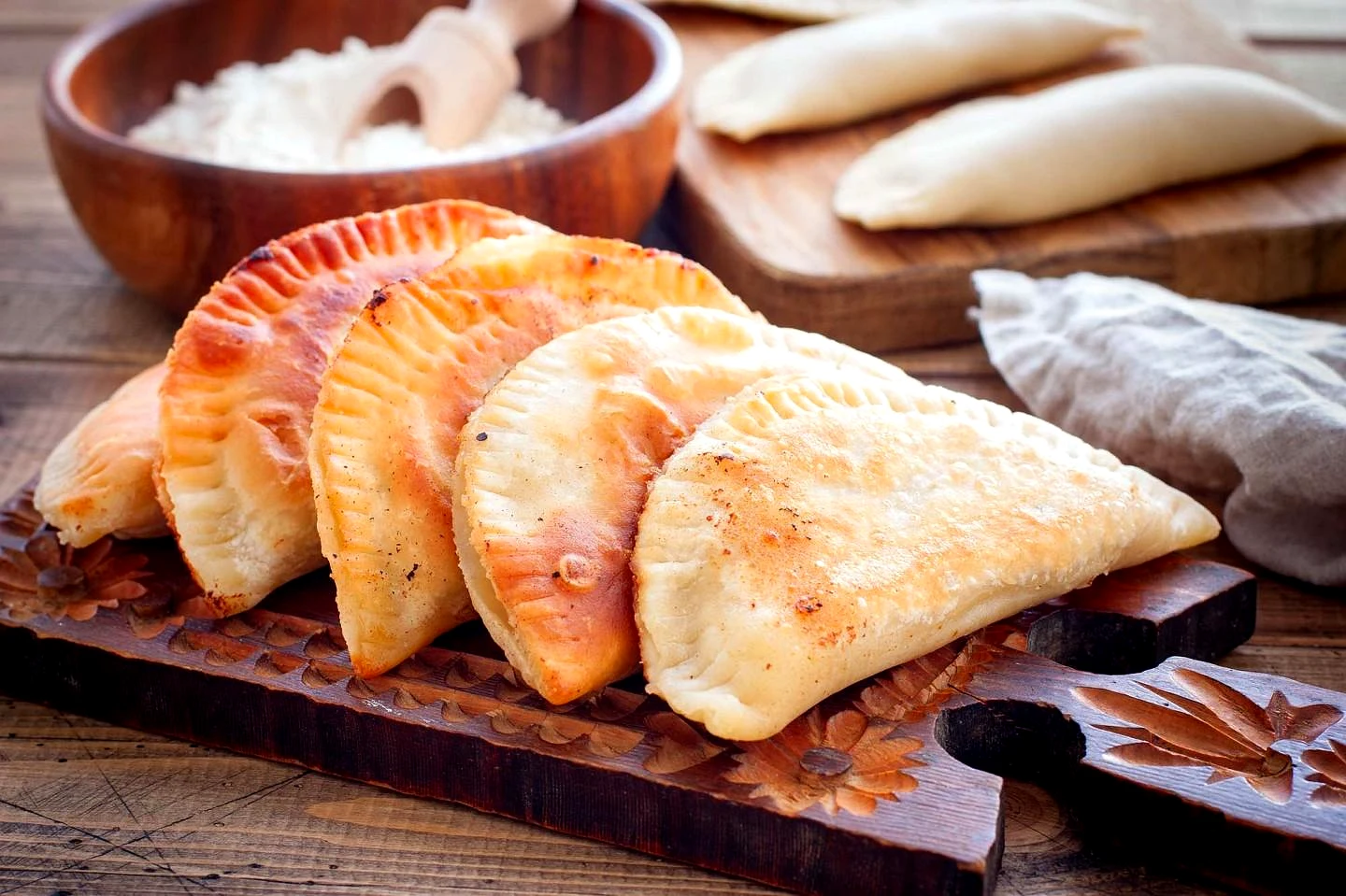 : Подавайте готові хрусткі чебуреки гарячими, з запалу з жару, але акуратно: під холиною, що ледь охолола, гарячий сік і м'ясо, можна обпектися. Приємного апетиту!