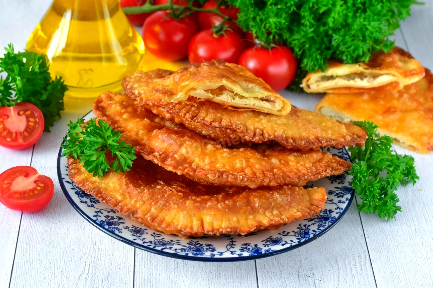 : Готові чебуреки перекладіть на паперові серветки, щоб увібрався зайвий жир Чебуреки з курячим фаршем перекладіть на блюдо і подайте до столу. Приємного апетиту!
