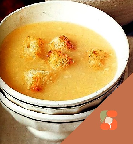 # Чесноковий суп з сухариками Ароматний золотавий суп з м'яким, що тане в роті часником створює неповторну комфортну атмосферу на кухні. Хрустючі сухарики додають супу контрастної текстури та апетитн…