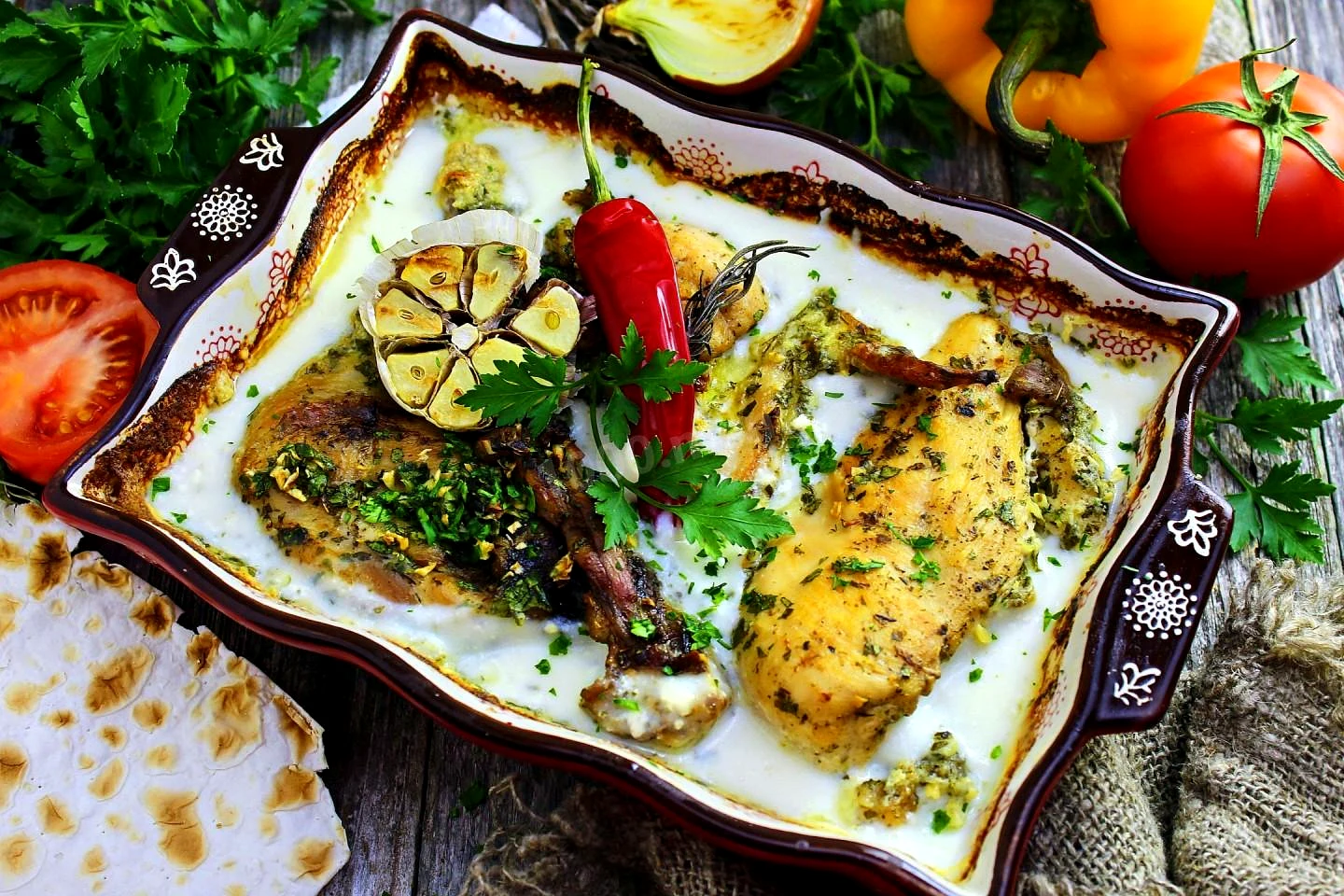 Чкмерули по грузински курица в сливочно чесночном соусе
