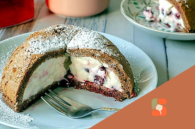 Десерт "Дзукотто" з сиром, зефіром та вишнею