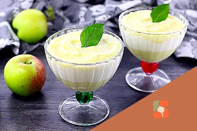 Десерт з яблук зі сметаною та згущеним молоком