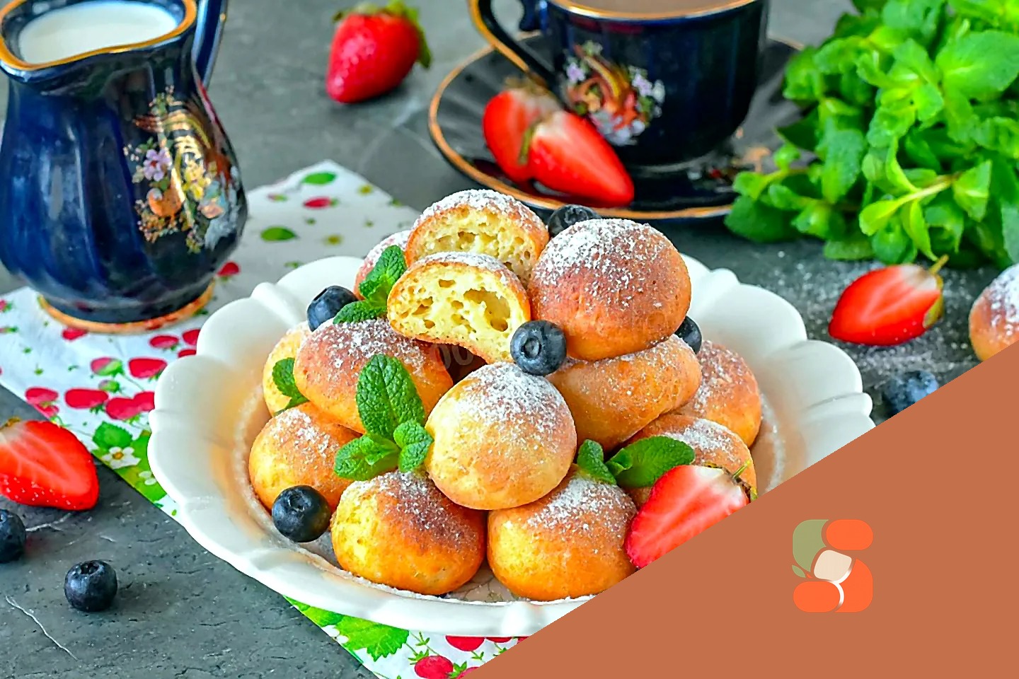 Як подати десерт до столу? Сирні кульки, запечені в аерогрилі, перекладіть на тарілку, посипте цукровою пудрою, прикрасьте ягодами та м'ятою та подайте до столу. Приємного апетиту!