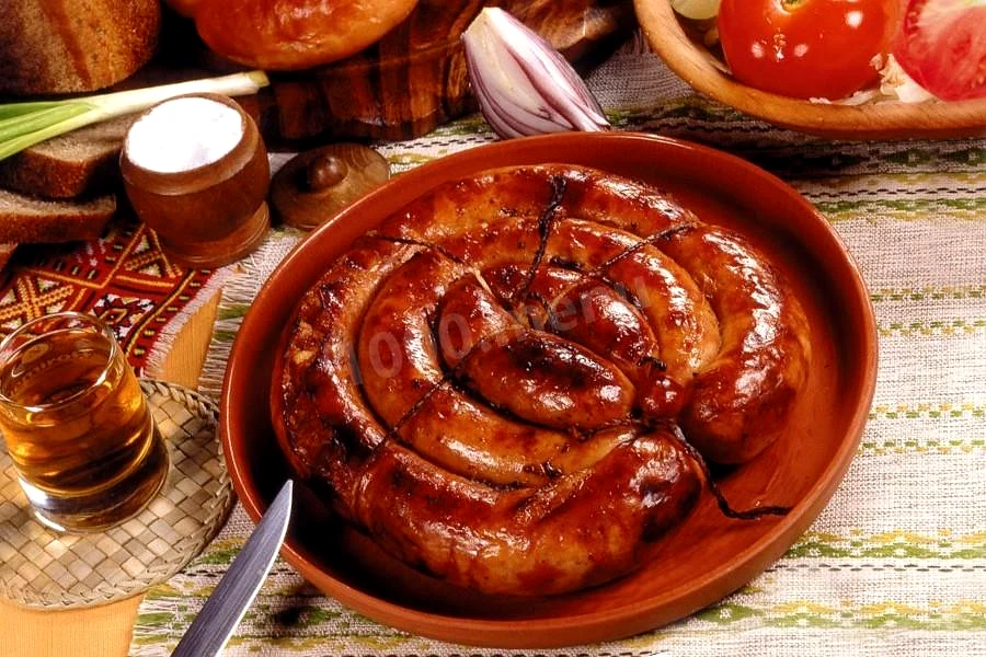 Інгредієнти−20 порцій+Продукти (20 порцій)Свинина3 кгСало500 грЧеснок80 грСоль80 грСелитра4 грПерец черный молотый2 грГвоздика3 шт.Кишки70 грВода150 мл