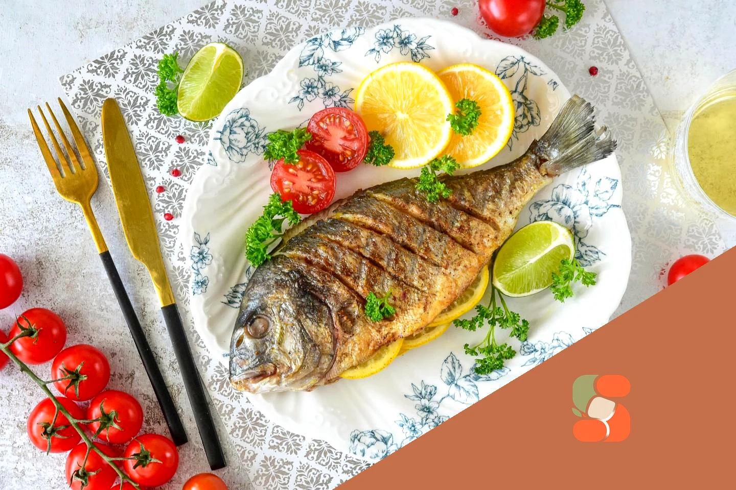 Як подавати дорадо? Перекладіть дорадо на тарілку, прикрасьте скибочками лимона, помідорами чері та зеленню та подайте до столу. Приємного апетиту!
