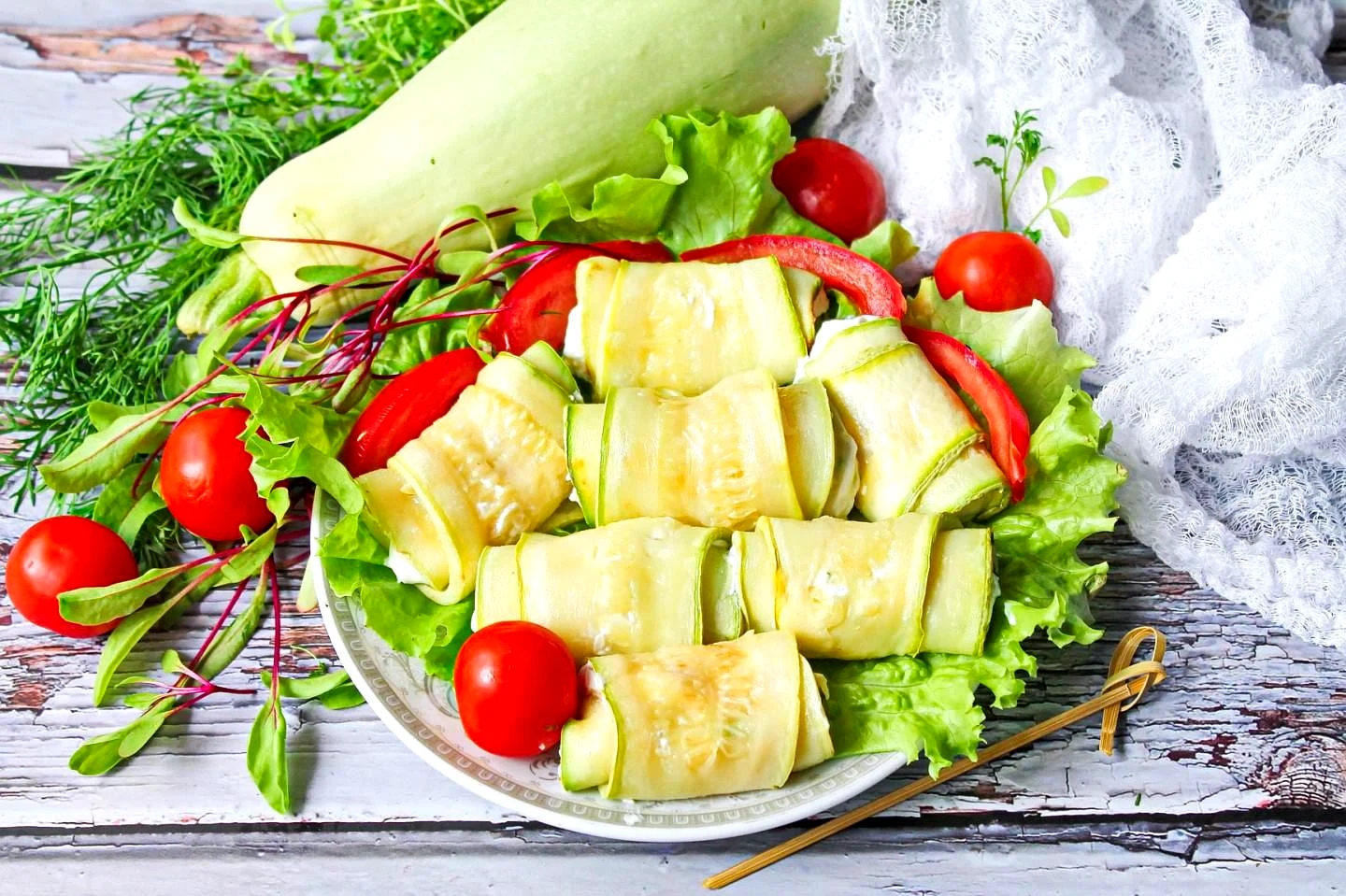 Фаршированные рулетики из кабачков с сыром и чесноком
