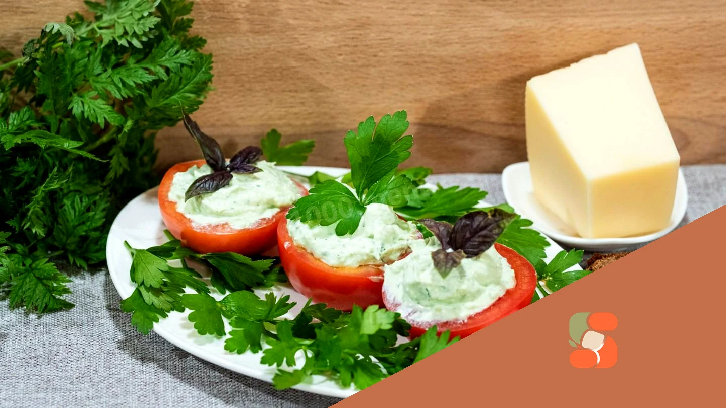 : Викладаємо необхідну кількість приготовленої сирної маси у кожну половинку помідорів.