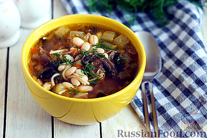 Квасоляний суп з вермишеллю, грибами, кабачком та селери