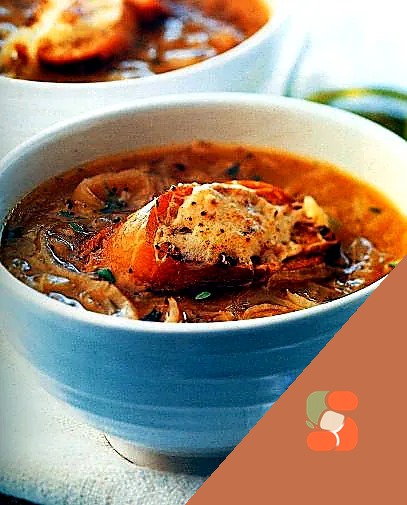 # Французький цибульний суп з гренками Ніжний, золотавий суп з карамелізованої цибулі — справжня класика французької кухні, яка зігріває з перших ложок. Густа, ароматна основа прикрашена хрустких гре…
