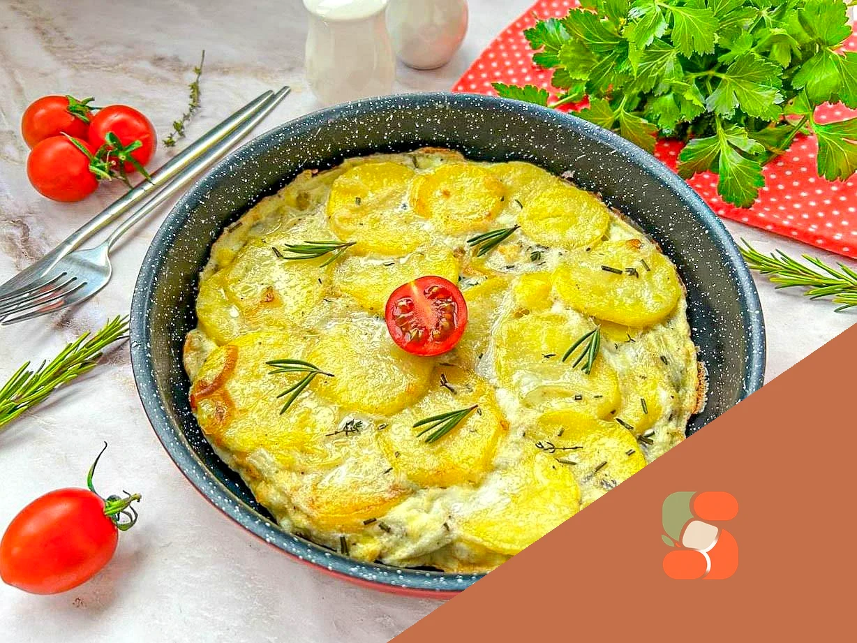 Як збити яйця? Яйця, попередньо добре вимиті та обсушені паперовим рушником, розбийте в миску, потім збийте їх за допомогою вилки, додайте чорний мелений перець на смак і сіль, влийте молоко. Вилийте суміш на сковороду до цибулі та картоплі.