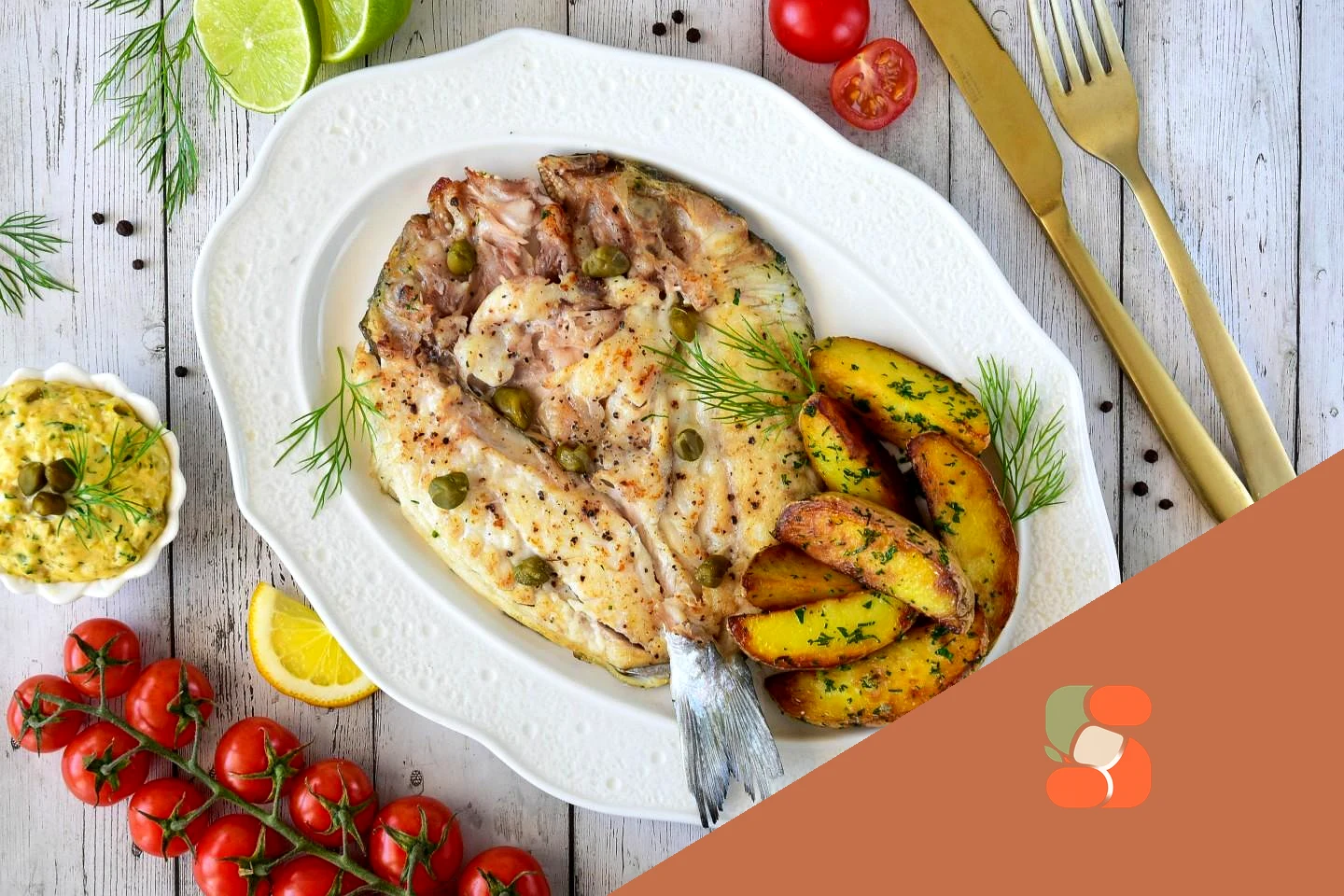Як подати смажену дорадо до столу? Подавайте дорадо на великій плоскій страві, виклавши поруч гіркою гарнір із молодої картоплі. Соус тартар найефектніше подати в окремому соуснику або красиво викласти ложкою прямо на тарілку поряд з рибою. Доповніть страву часточками лимона, гілочками свіжої петрушки та кількома каперсами для прикраси. Можна присипати рибу перед подачею великою морською сіллю. Приємного апетиту!