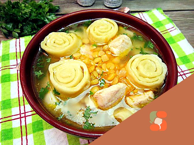 Густий і сердечний суп із золотистого гороху, який розтанув у кипучій водиці, дарує глибокий, насичений смак земельного характеру. Хрумкі чесночні рулетики з хрусткою скоринкою пливуть на поверхні, д…