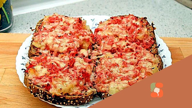 Гарячі бутерброди з ананасами, ковбасою та сиром