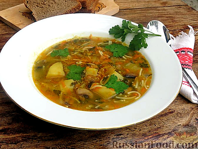 Грибний суп із щавлем та вермішеллю