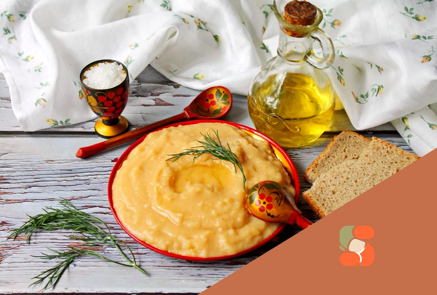 : Після того як горох зварився, посоліть його до смаку Щоб не було грудочок, обов'язково пробийте його блендером до однорідної маси, поки він гарячий. Дайте постояти пюре протягом 15-20 хвилин, після чого подавайте. Врахуйте, що при остиганні горох стає щільнішим, і, якщо захочете його розбавити, додавайте тільки гарячу воду. Холодна вода псує смак готового пюре.