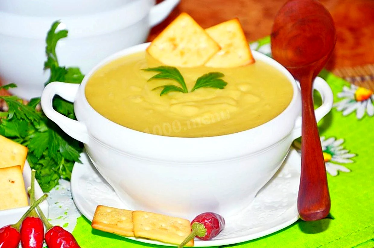 : Подавайте горохове пюре як гарнір до м'ясних страв чи самостійно Дуже смачно воно із солоними крекерами. Приємного апетиту!