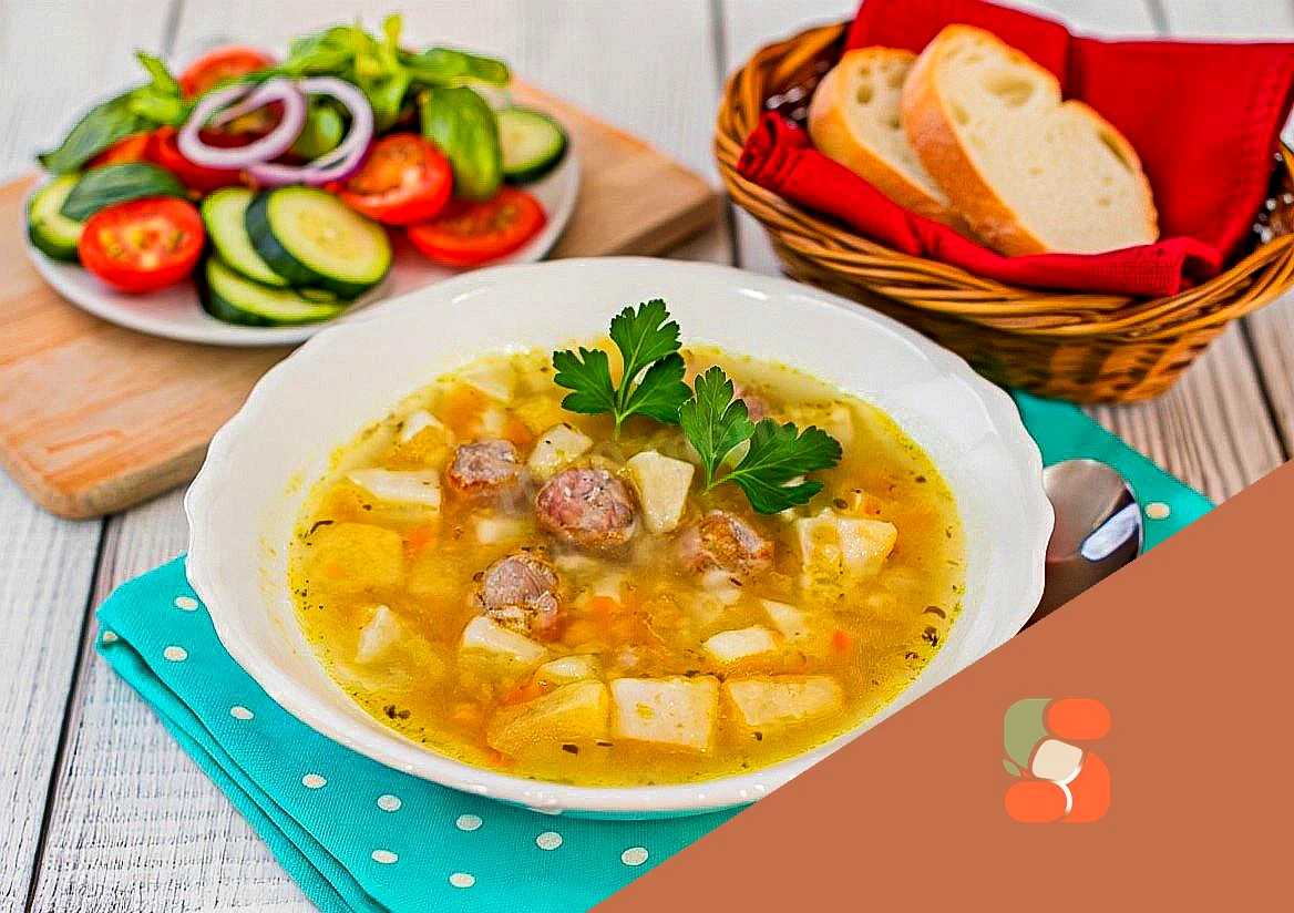 : Потім чайною ложкою зачерпніть фарш і обережно опустіть кульки в киплячий бульйон, постійно помішуйте, щоб фрикадельки не прилипли до дна каструлі.