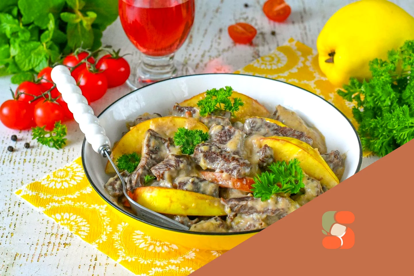 Як подати блюдо до столу? Тушковану яловичину з айвою розкладете по тарілках, прикрасьте свіжою зеленню та подавайте до столу. З чим краще подавати тушковану яловичину з айвою? Ідеальним гарніром для тушкованої яловичини з айвою стане розсипчастий рис, ніжне картопляне пюре або відварний булгур - вони чудово доповнять багатий смак м'яса з кисло-солодким соусом, не перебиваючи його. Приємного апетиту!