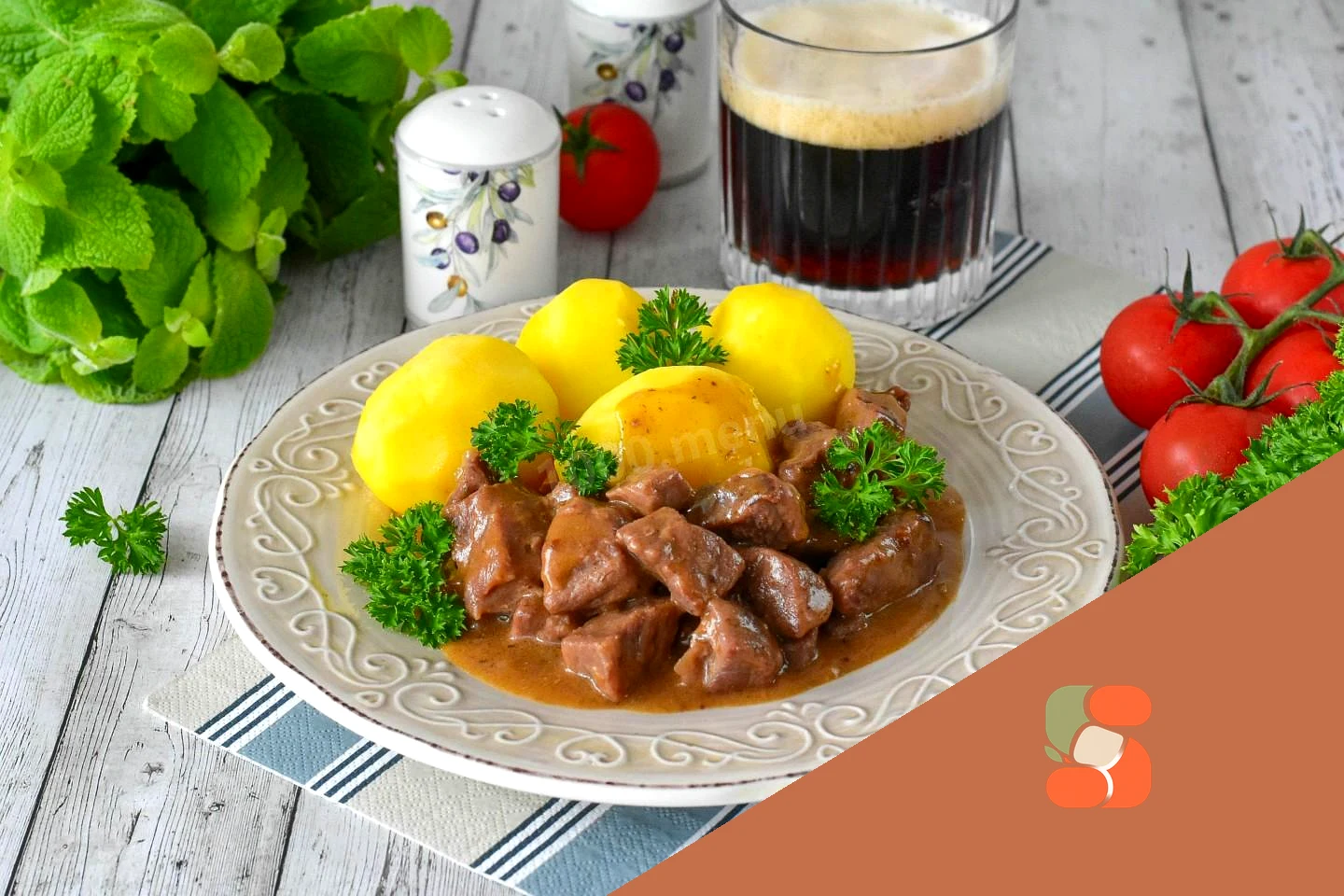 Як подавати яловичину у пиві? Тушковану яловичину в пиві розкладете по тарілках і подайте до столу з будь-яким гарніром. Я подавала з відвареною картоплею, підійдуть також будь-які інші крупи на ваш смак. Доповніть блюдо свіжою зеленню - кропом, петрушкою або кінзою. Приємного апетиту!