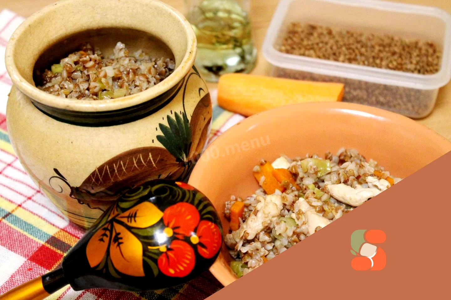 : Готову розсипчасту гречку з куркою в горщику подавайте зі шматочком вершкового масла Приємного апетиту!