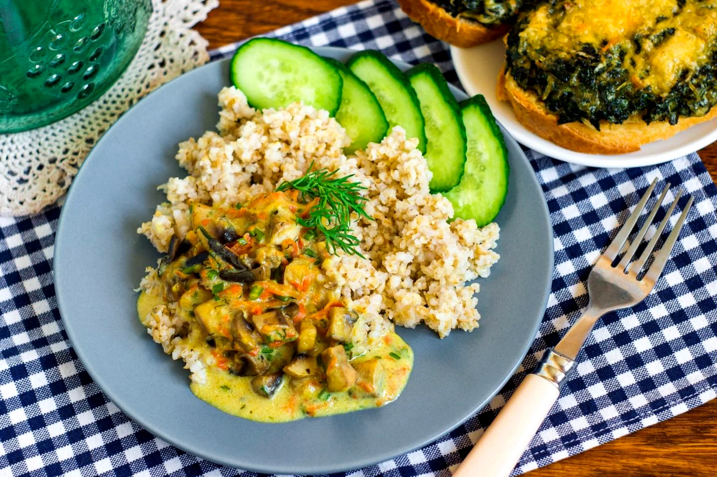 : На цьому етапі можете додати в гриби нарізану зелень, якщо у вас вона така ж тверда, як у мене У мене були подрібнені ніжки кропу. Більш ніжну зелень рекомендую додавати до соусу після приготування.