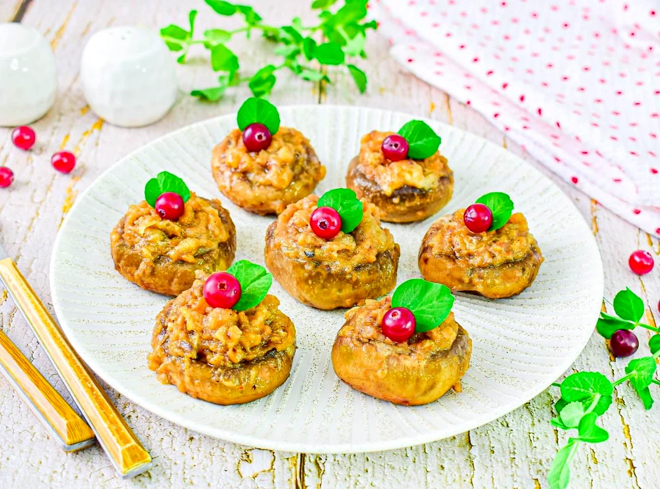 : Готовой начинкой наполните шляпки грибов. Сверху посыпьте оставшимся сыром.