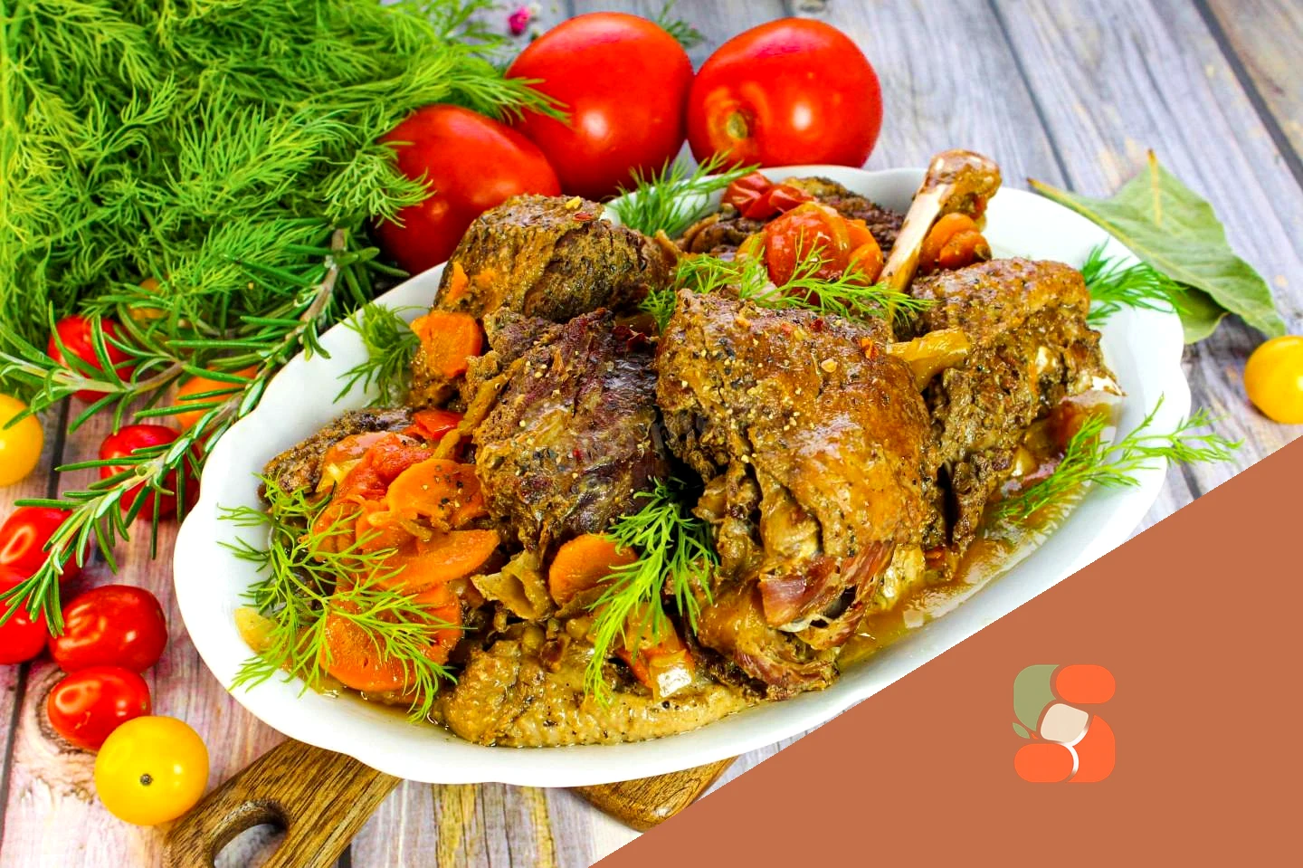 : Після закінчення зазначеного часу вимкніть плиту і повністю випустіть пару з вентилів. Гусь, тушкований в афганському казані, готовий! Можно подавать.