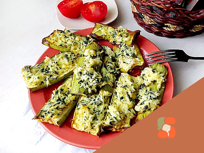 Випікайте кабачки в аерогрилі за високої швидкості вентилятора приблизно 15 хвилин, поки вони почнуть зверху підрум'янюватися (температура - 220°C).