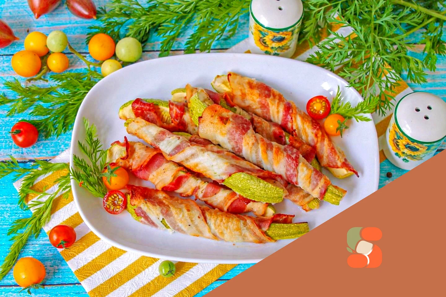 Як подати кабачки з беконом до столу? Ідеально подавати кабачки в беконі зі свіжим соусом на основі сметани чи грецького йогурту з часником та зеленню – це підкреслить ніжність страви. Також вони відмінно підійдуть як гарнір до стейку з яловичини або запеченої курячої грудки. Приємного апетиту!