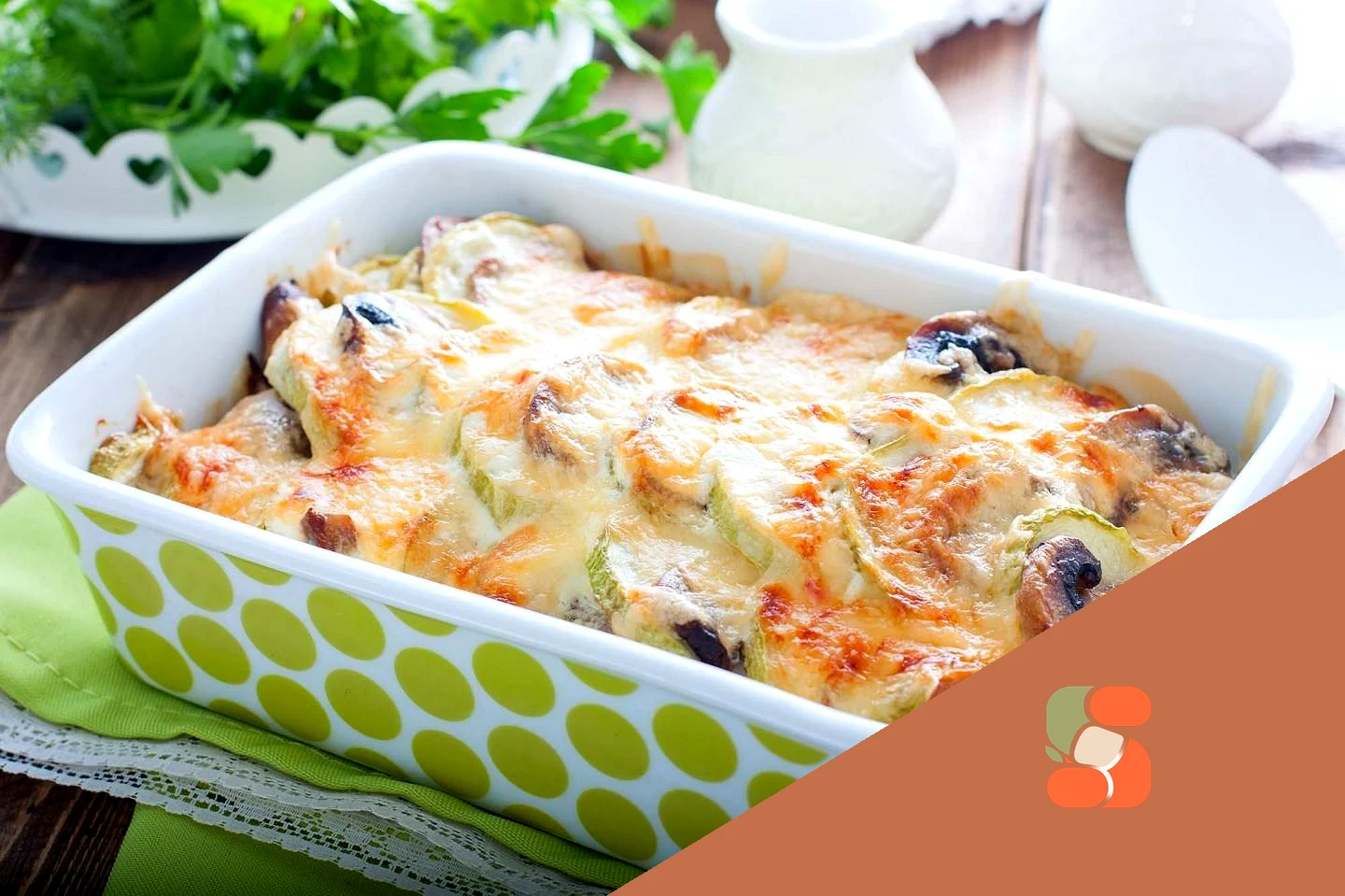 : Як запекти кабачки з грибами та сиром у духовці? Підготуйте усі інгредієнти. Кабачки беріть молоді. Загальна вага вказана зі шкіркою. Сир візьміть жирністю не менше 50%, він дасть рівну апетитну скоринку. Сметана знадобиться жирністю близько 15%. Якщо вона буде жирніша, то краще розбавити її водою. Підготуйте форму для запікання. Про те, як правильно вибрати форму, читайте в окремій статті за посиланням наприкінці рецепту. Увімкніть духовку на 180°