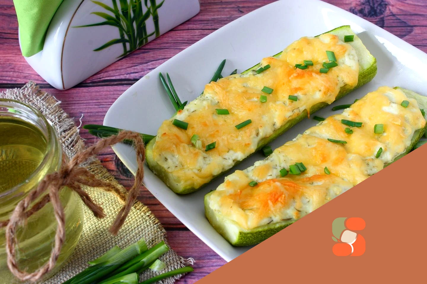: Відправляємо кабачки в духовку, попередньо розігріту до 160 градусів Час випікання – 40 хвилин. Через 20 хвилин температуру можна збільшити до 180 градусів, щоб кабачки вкрилися гарною скоринкою. Саме по цій скоринці можна визначити готовність кабачків. Самі кабачки за цей час стануть м'якими, але перетримувати в духовці не варто, щоб вони не розвалилися. Готову страву можна подавати до столу як самостійне перекушування.