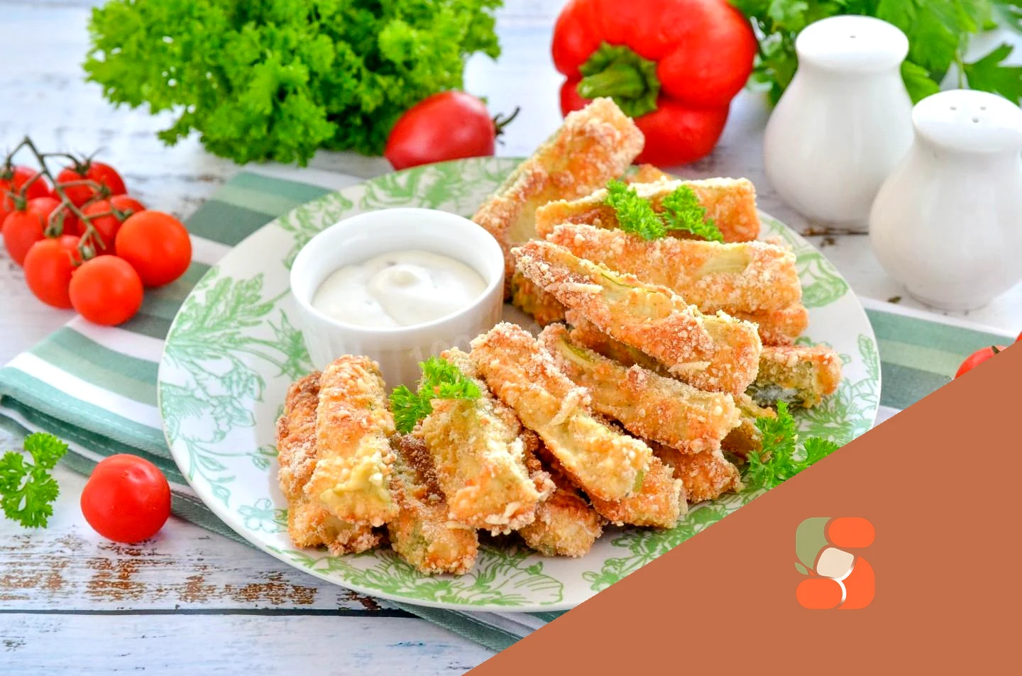 : Подавайте запечені кабачки у сирному паніруванні з часниковим соусом або зі сметаною. Приємного апетиту!