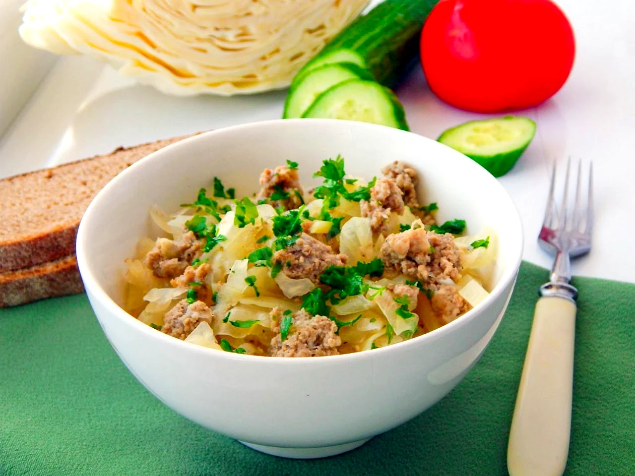 : Як згасити капусту з фаршем у мультиварці? Підготуйте продукти. Фарш можете взяти готовий або зробити його самостійно вдома. Він може бути з будь-якого м'яса чи птиці, у мене змішаний із яловичини та свинини. З ним страва вийшла жирніша і соковитіша. Якщо ви хочете, щоб обід був менш калорійним, то візьміть курячий фарш. Набір спецій вибирайте на свій смак, я використовую перець, чорний і запашний, і лавровий лист.