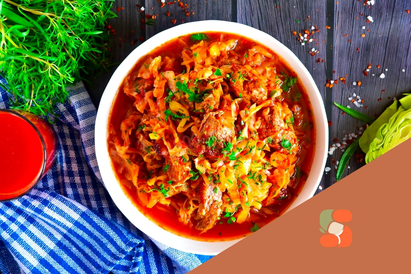 : Готову капусту з м'ясом посипте подрібненою свіжою зеленню і подайте до столу. Приємного апетиту!