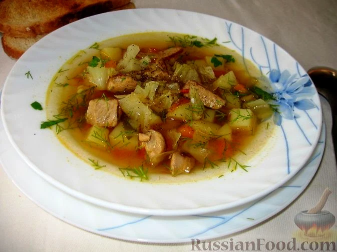 До капустяного супу можна підсмажити грінки. Приємного апетиту!