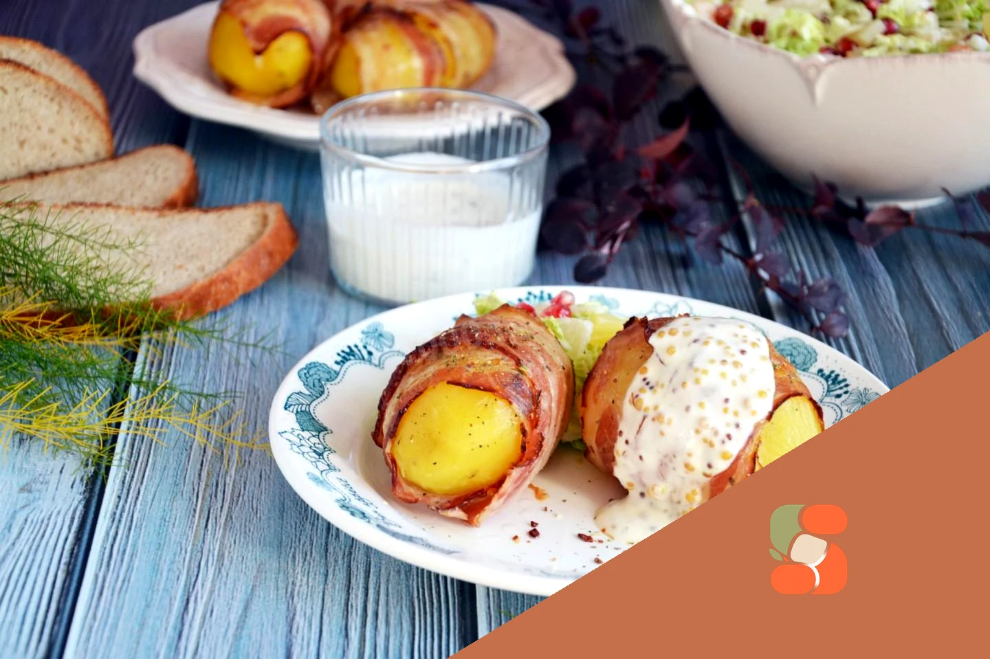 : Поставте форму в заздалегідь розігріту до 200 градусів духовку та запікайте приблизно 40 хвилин. Готовність перевіряйте дерев'яною шпажкою. Якщо картопля не готова, у бекон добре підрум'янилася, накрийте форму фольгою. Подавати картопля можна зі свіжими овочами. Або приготуйте соус: 3 ст. л. сметани з'єднайте з|із| 1 ст. л. оливкової олії, 1 ст. л. лимонного соку та 1 ч. л. зернистої гірчиці. Перемішайте або збийте в блендері для одноріднішої консистенції.