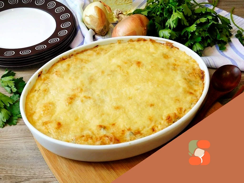 : Зверху рясно посипте сиром, натертим на середній тертці. Поставте форму в духовку, нагріту до 200 градусів на 30 хвилин.